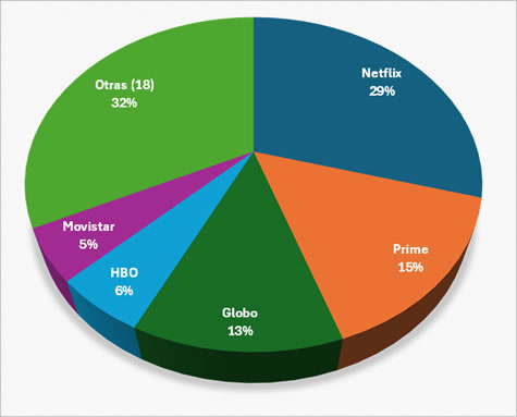 Pero no todo es cine, y en la ficción se sigue poniendo de manifiesto su importancia y peso en la programación de los canales de televisión. En el periodo 2019-2023 la ficción supuso el 24,4%, los programas informativos el 24% y los programas de entretenimiento representan el 20,1% del tiempo total de difusión de contenidos en los canales iberoamericanos analizado. Esto se debe al gran éxito de las series nacionales, alcanzando niveles muy altos de audiencia, como las brasileñas Terra e Paixao (26,1%), Travessia (24,9%), Vai na Fé (23,8%) y Cara e coragem (21,1%), las chilenas La Ley de Baltazar (17,2%), Como la vida misma (15%) y Generación 98 (14,7%) o las mexicanas La Rosa de Guadalupe (13,6%) y Tierra de Esperanza (13,3%). Y si hablamos de plataformas VoD, estás pusieron a disposición de los usuarios más títulos de ficción nacional iberoamericana son Netflix (EE. UU.), Prime (EE. UU.), Globo Play (Brasil), HBO (EE. UU.) y Movistar (España). Las cinco plataformas en conjunto sumaron casi el 70% de los títulos totales disponibles durante el periodo 2019-2023. Panorama Audiovisual Iberoamericano es una iniciativa de EGEDA y FIPCA para brindar a los profesionales del audiovisual en castellano y portugués toda la actualidad acerca del sector y analizar las novedades y el progreso de la industria del cine y las series. ![]() ![]() |